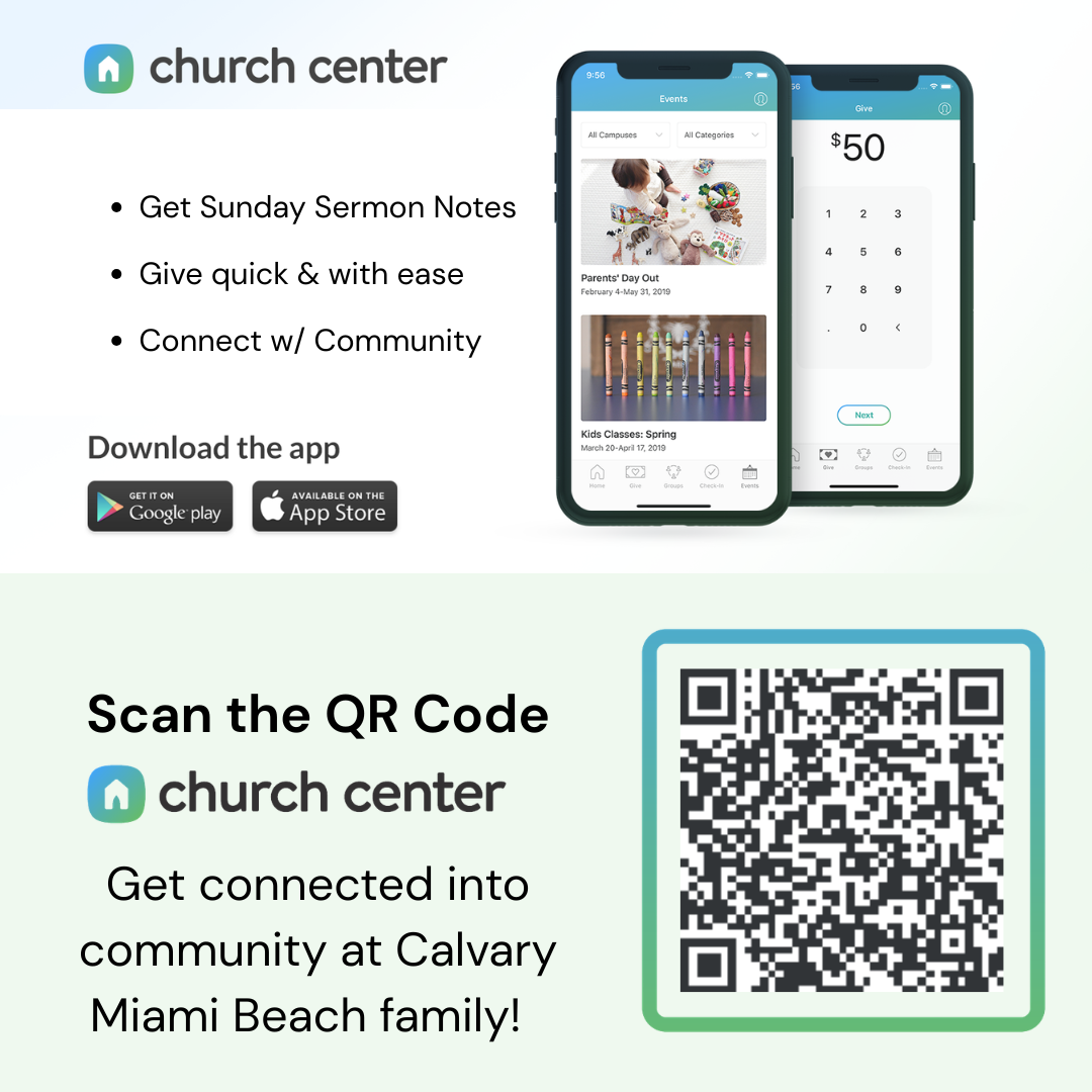 For more info or questions, email info@CalvaryMiamiBeach.org